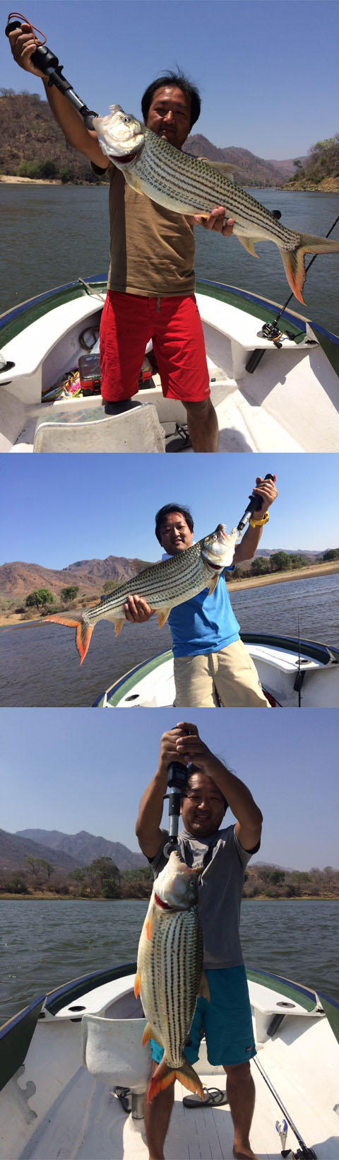 ザンビア・ザンベジ川、タイガーフィッシュ 2015.10/29 釣果報告怪魚フィッシング 2015/10/** アフリカのザンビア共和国・ザンベジ川に釣行された太田様のタイガーフィッシュの釣果です。 トータル16匹のタイガーフィッシュを釣られました。ルアーによく反応したとの事です。 釣り以外にもサル、カバ、アフリカゾウ、クロコダイルを毎日見る事ができアフリカ釣行を満喫されました。 古い記事へ 新しい記事へ 一覧へ戻る